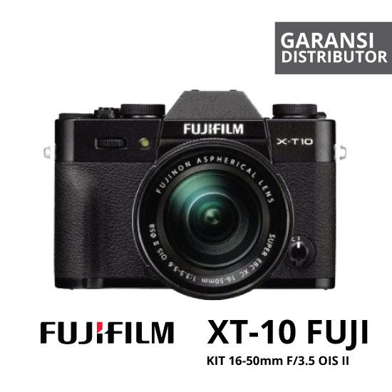 Fujifilm X-T10 Kit 16-50mm dengan body ramping, styling retro, kamera mirrorless yang menampilkan teknologi Fujifilm dengan sensor unik, mode autofocus serbaguna, dan electronic viewfinder resolusi tinggi. 16.3MP APS-C berukuran sensor X-Trans CMOS II dan EXR Processor II, X-T10 mampu hingga 8 fps continuous shooting dan HD 1080p / 60 merekam video full, dan fitur berbagai sensitivitas diperluas dari ISO 100-51.200.