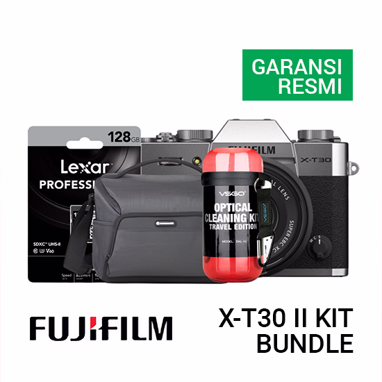 FujiFilm X-T30 Mark II kit Silver Bundle adalah kamera mirrorless yang menawarkan performa tinggi dan kemampuan fotografi yang luar biasa. Kamera ini adalah pilihan yang populer untuk fotografer pemula hingga profesional yang menginginkan kamera dengan ukuran yang ringkas dan ringan namun tetap memberikan hasil foto yang berkualitas.