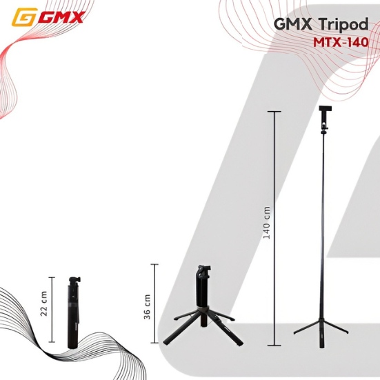 GMX MTX-140 Tripod merupakan Tripod keluaran terbaru dari plazaKamera. MTX-140 dirancang untuk smartphone dan kamera. Terdapat 4 kaki yang membuatnya tidak mudah terjatuh karena beban.