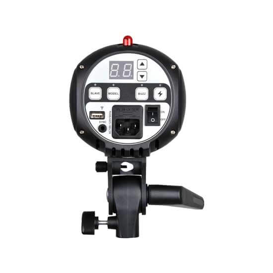 | Triggering | Sync cord, test button, slave triggering, wireless control port for optional radio system |