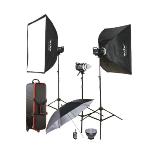 Godox MS300-D Studio Flash Kit sangat cocok untuk fotografer yang membutuhkan sistem lengkap untuk studio atau untuk pemotretan di lokasi. Kit ini termasuk tiga 300Ws MS300 monolight dengan penerima radio built-in dan XT-16 Remote Trigger untuk menembakkannya pada jarak hingga 100 meter. Tiga dudukan lampu, dua softbox 23,6 x 35,4 “, dan payung perak / hitam 40” juga disediakan dan semuanya cocok di dalam kasing roda, kotak penyimpanan.