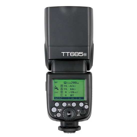 Flash Godox Speedlite TT-685 Nikon kompatibel dengan I-TTL II autoflash. Flash Godox untuk Kamera Nikon inipun bisa dijadikan unit Master atau Slave dalam grouping flash. Pada Flash Godox untuk Nikon ini, tersedia juga multiple function, Fitur HSS (up to 1/80 ), dan menggunakan dot-matrix LCD panel agar Anda bisa men-setting Flash Godox Nikon ini dengan mudah.