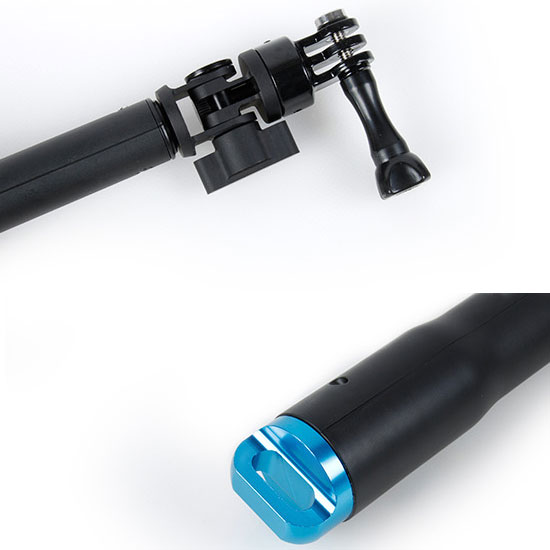 Simply clip your GoPro Remote into the housing and you are ready for one-handed telescopic handle filming. It can be extended and twist-locked to any length from 10.75 to 23 inches. Your GoPro camera will attach to it without any extra parts. The dual-diameter remote grip keeps the pole firmly in your hand, yet still allowing you to use the remote are the same time.