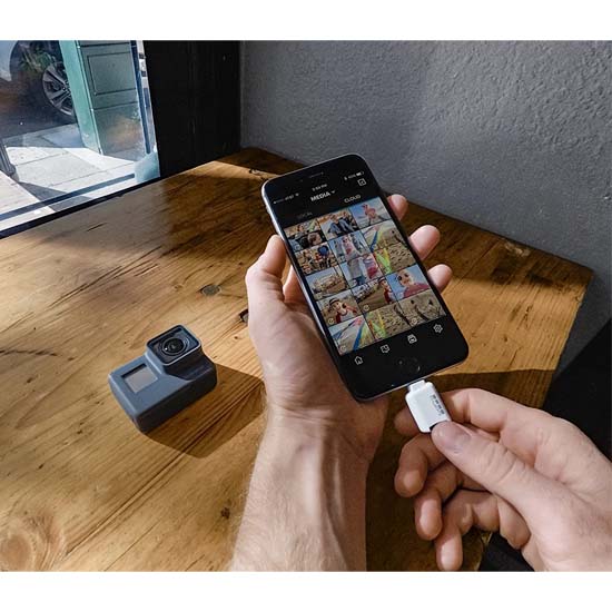 GoPro Quik Key Lightning merupakan Mobile microSD Card Reader Reader yang kompatibel untuk (iPhone/iPad). Quik Key, cara cepat dan mudah untuk melepaskan dan mengedit rekaman GoPro yang tersimpan di kartu microSD Anda. Cukup colokkan ke iPhone atau iPad Anda, lalu transfer rekaman menggunakan Capture app.2 untuk membuat dan berbagi video GoPro yang luar biasa. Anda juga dapat menghemat ruang di iPhone Anda dengan menyimpan video yang diedit di Quik Key.
