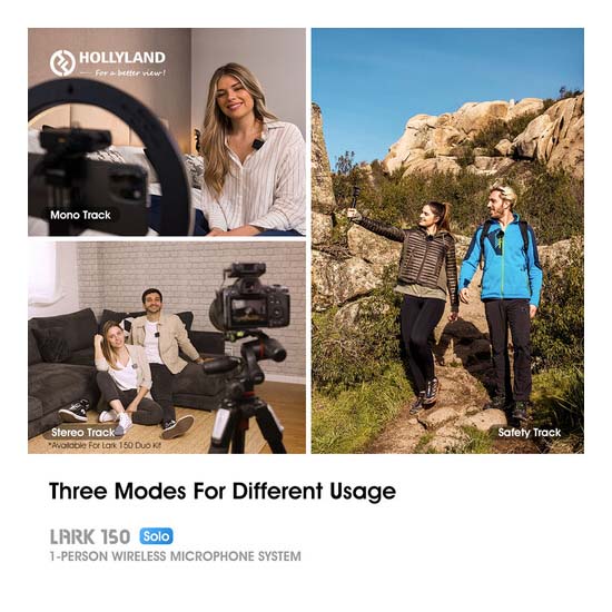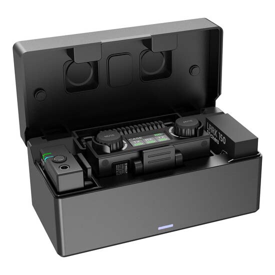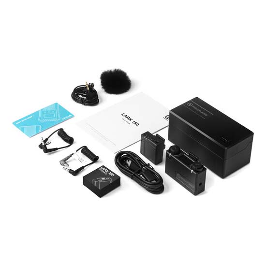 Sistem LARK 150 Solo secara otomatis dipasangkan, diisi daya, dan disimpan dalam wadah pengisi daya yang disertakan yang juga menyediakan ruang untuk optional second transmitter. Case mengisi daya ketiga unit menggunakan port input USB-nya. Baterai yang dapat diisi ulang akan memberi daya pada transmitter hingga 4 jam dan receiver hingga 7,5 jam. Kabel USB, kabel audio TRS 3,5 mm, furry windscreen untuk mikrofon lavalier, dan tas penyimpanan juga disertakan dengan sistem.
