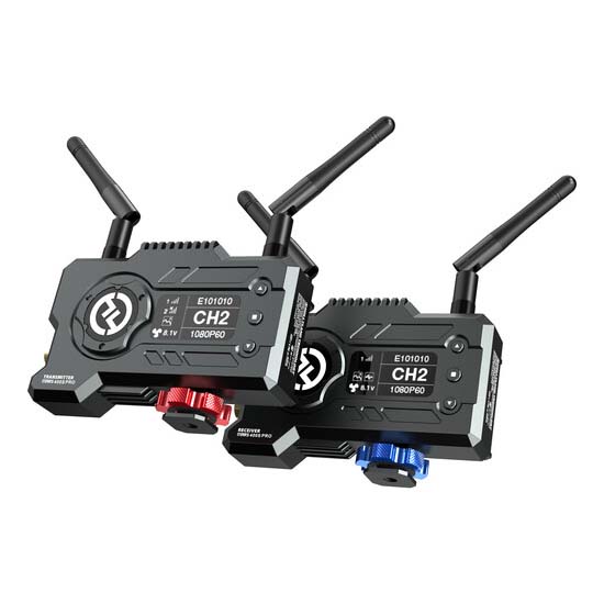 Hollyland Mars 400s Pro up to 1080p60 wireless video transmission ke kamera gimbal, mirrorless, atau DSLR Anda menggunakan Mars 400S PRO SDI / HDMI Wireless Video Transmission System. Transmitter menyediakan input HDMI dan SDI dan receiver menawarkan output SDI dan HDMI. Ini fitur latensi 0,08 yang sangat rendah dengan transmisi line-of-sight hingga 121.92 meter ke receiver dan hingga 91.4 meter ke aplikasi Wi-Fi Hollyview. Untuk sinyal line-of-sight yang kuat, sistem ini mencakup dua antena eksternal pada transmitter dan dua pada receiver, dan satu disertakan sebagai cadangan.