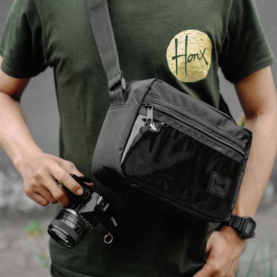 HONX HNX 012 Sling Bag Black merupakan tas kamera dengan varian warna black yang casual dan dapat menyesuaikan kebutuhan masa kini antara style dengan gadget yang wajib dibawa kemanapun yang siap untuk mendukung setiap aktivitas yang anda lakukan. Dengan size sedang, tidak kebesaran dan tidak kekecilan sehingga fit di badan, bagus dilihat, dan nyaman dipakai saat membawa kamera maupun tidak. Tas ini tidak berbentuk kotak dan bagian dalamnya tidak kaku karena busa tidak setebal tas kamera biasanya, sehingga jika dipakai sehari-hari tanpa kamera akan tetap terlihat proporsional & tidak tebal. Membawa gadget lainnya seperti handphone jadi lebih aman dibandingkan menggunakan tas biasa.
