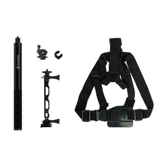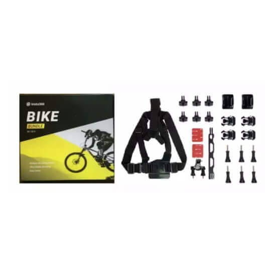 Insta360 Bike Bundle (for One X & One R) melengkapi Anda dengan semua alat pemasangan yang mungkin Anda perlukan untuk membuat video bersepeda gunung dari sudut pandang orang pertama yang dinamis. Bundel ini mencakup banyak adaptor pemasangan dan gesper untuk meningkatkan kompatibilitas dengan beberapa model kamera aksi Insta360. Dudukan perekat datar dan melengkung dapat memasangkan kamera ke bagian atas sebagian besar helm, dan tiang ekstensi memungkinkan Anda untuk menambah panjang dudukan tersebut.