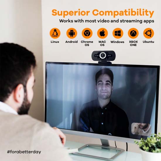 Jete W7 Webcam merupakan webcam Full HD 1080px Widescreen View terbaru. Jadi, anda akan siap menampilkan sisi terbaik anda di setiap panggilan video, dimana pun Anda berada. Webcam W7 dari JETE ini memiliki bidang pandang 90 derajat, Mendukung berbagai perangkat lunak dengan kerapatan video terbaik sehingga memungkinkan Anda untuk menyesuaikan frame agar sesuai dengan lingkungan Anda. Serta lensa yang presisi menghadirkan video yang tajam bahkan dalam kondisi redup sekali pun.