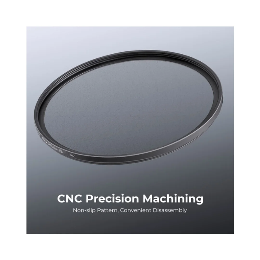 Black diffusion 1/8 memberikan efek soft yang lebih ringan dibandingkan varian 1/4. Dengan demikian, hasil gambar tetap terlihat tajam namun memiliki glow lembut pada highlight. Selain itu, efek ini sangat ideal untuk portrait, video cinematic, dan konten kreatif.