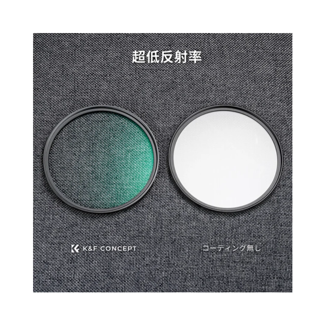 K&F Concept melengkapi filter ini dengan multi-layer coating yang membantu meningkatkan transmisi cahaya serta mengurangi flare dan ghosting. Lapisan coating ini juga membuat filter lebih tahan terhadap air, debu, dan minyak sehingga mudah dibersihkan.