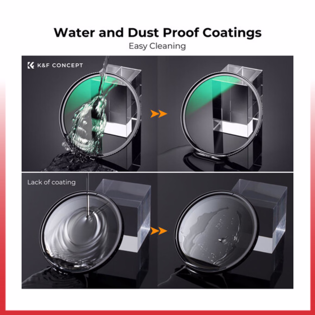 The K&F Nano X UV Filter is made with high-quality optical glass that does not affect exposure or color balance, allowing you to leave the filter on your lens at all times. Its primary function is to block ultraviolet light while protecting the front element of the lens from dust, moisture, fingerprints, and scratches.