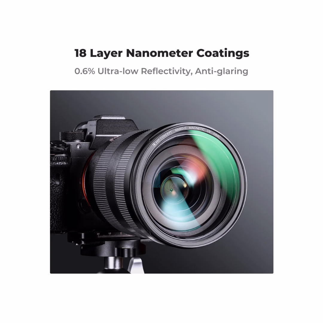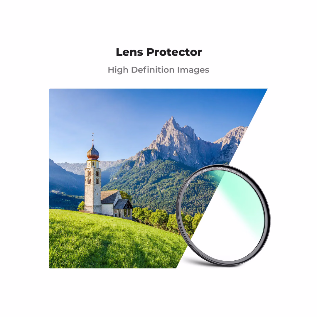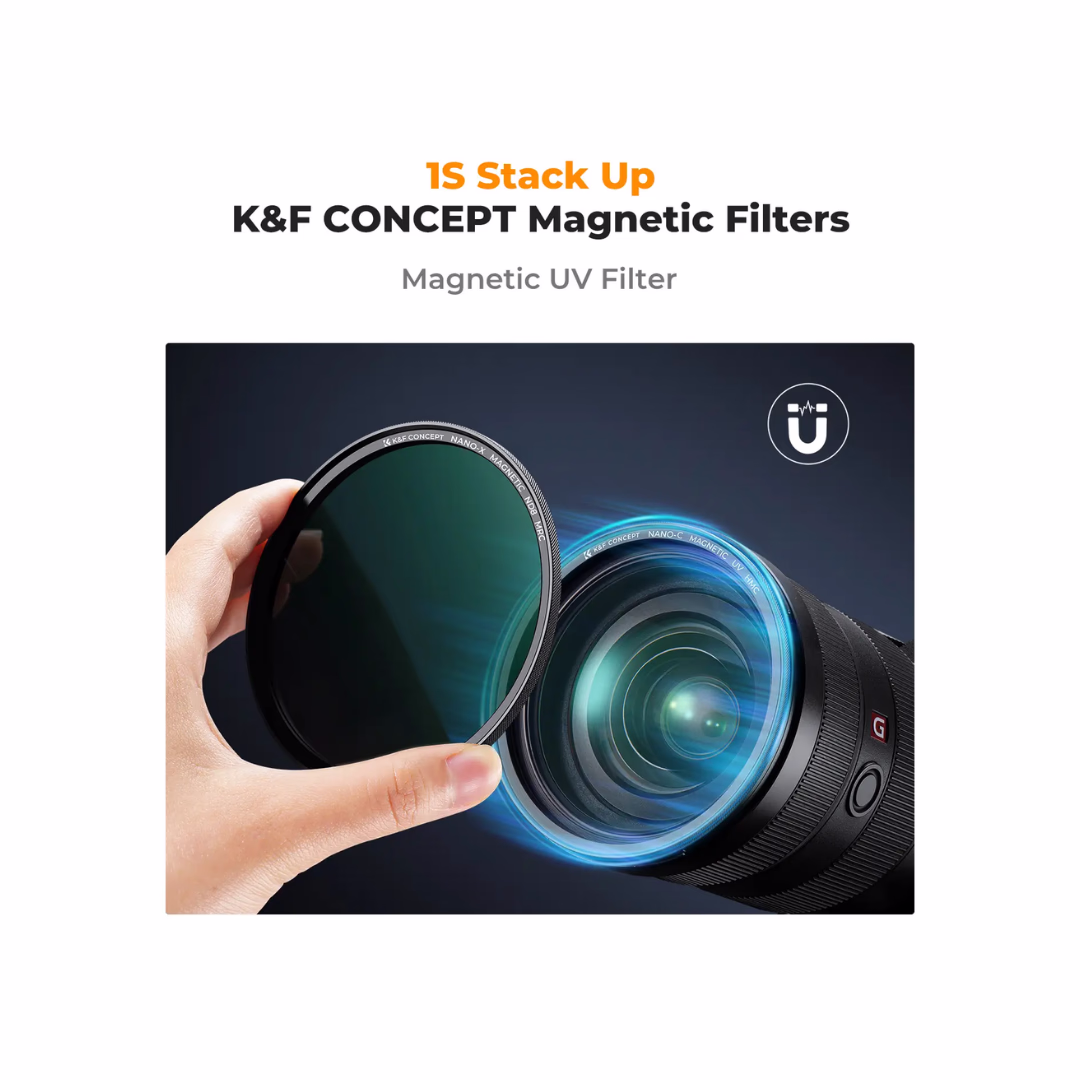 K&F Magnetic UV Filter C Series adalah filter pelindung lensa yang dirancang untuk membantu menjaga kualitas gambar sekaligus melindungi elemen depan lensa dari debu, goresan, dan kotoran. Filter ini menggunakan sistem magnetic yang memudahkan pemasangan dan pelepasan secara cepat tanpa harus memutar filter seperti pada sistem ulir biasa. Dengan demikian, fotografer dapat mengganti filter dengan lebih efisien saat kondisi pemotretan berubah.