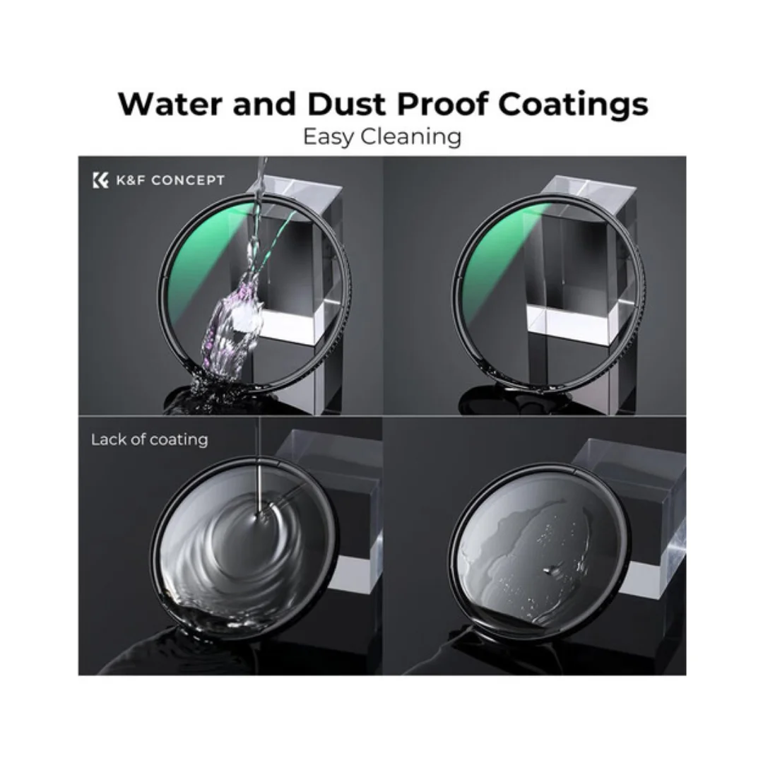 K&F Concept melengkapi filter ini dengan teknologi Nano-X multi coating yang membantu meningkatkan transmisi cahaya sekaligus mengurangi flare dan ghosting. Lapisan coating ini juga memberikan perlindungan tambahan terhadap air, debu, minyak, serta sidik jari sehingga permukaan filter lebih mudah dibersihkan dan lebih tahan lama.