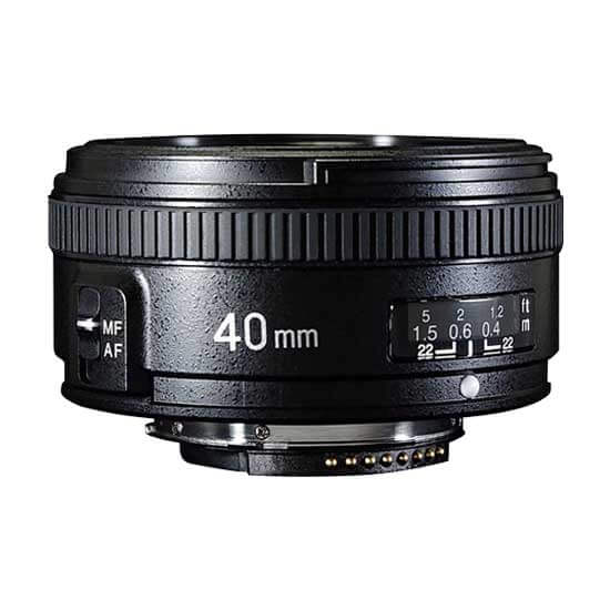 - Sedikit lebih lebar dari lensa standar 50mm, lensa 40mm f/2.8 ini dirancang untuk DSLR format FX Nikon F-mount, namun juga dapat digunakan dengan model DX di mana ia menyediakan focal length 60 mm equivalent