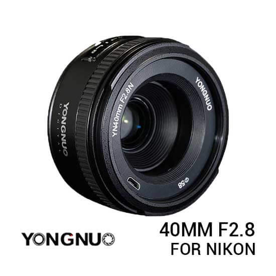 Lensa YongNuo Nikon 40mm F2.8 dibedakan dengan desain pancake dan focal length yang sedikit lebih lebar. Lensa YongNuo Nikon 40mm F2.8 adalah lensa prime compact untuk DSLR Nikon F-mount. Bidang pandang lensa yang nyaman serta dengan profil ramping untuk menjadikannya lensa sehari-hari yang ideal untuk memotret dalam berbagai situasi. Desain optiknya menggabungkan satu elemen asferis untuk mengurangi penyimpangan berbentuk bola dan distorsi untuk ketajaman yang lebih besar, dan elemen kaca individual juga berlapis banyak untuk menekan flare sehingga meningkatkan kontras.