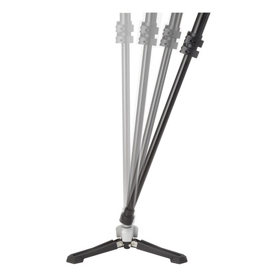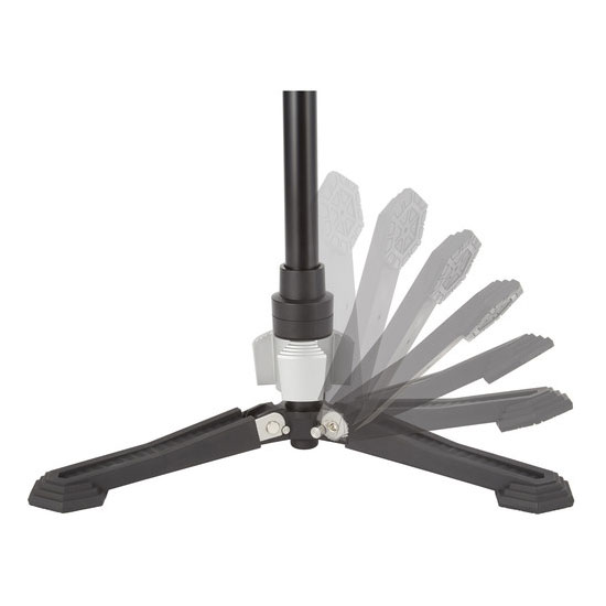• Ketika ditempatkan, kaki lipat yang ketika dikerahkan, menghasilkan penyebaran 17,3 “, membentuk platform yang stabil dan berdiri bebas yang memungkinkan monopod untuk berputar 360 ° dan dimiringkan 20 ° ke segala arah