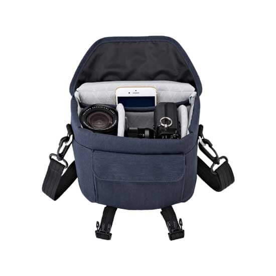 Lowepro Scout SH 120 adalah tas kamera yang memiliki ruang yang empuk untuk kamera Anda dengan lensa terpasang, dan lensa ekstra. Sistem pembagi yang dapat disetel dan disentuh sentuhan memfasilitasi pengaturan peralatan untuk spesifikasi pengguna. Sepanjang sisi kompartemen utama adalah sebuah saku slip-in yang dibuat dengan tricot-line, untuk smartphone. Bentuk saku atas menghalangi debu, sementara lapisan lembut membantu mencegah goresan dan lecet. Sebagai manfaat tambahan, lapisan abu-abu membuat lokasi item dalam cahaya rendah menjadi lebih mudah.