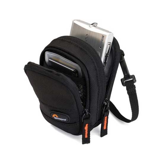 Padded back camera compartment has soft tricot lining to protect LCD and lens. Generous front compartment with mesh pocket keep accessories organised. Belt loop and adjustable removable strap offer multiple carrying options.