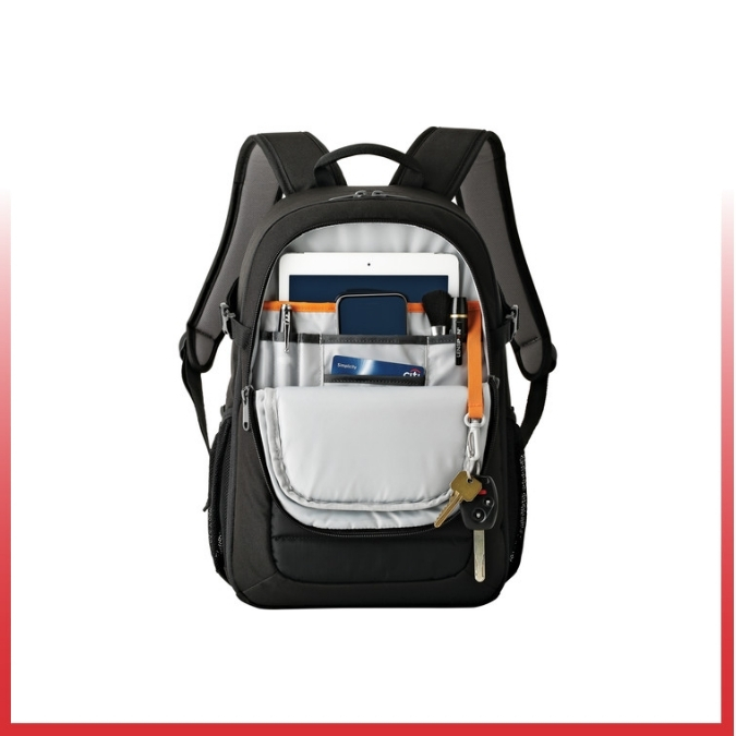 Tablet 10″ Anda dapat disimpan di kompartemen depan berresleting dengan kantong terpisah yang sudah terpasang untuk pena dan aksesori kecil, sementara klip bawaan dapat memegang kunci Anda. Saku luar berresleting yang rapi menawarkan ruang untuk barang-barang kecil yang sering digunakan seperti dompet, ponsel pintar, dan earbuds. Dua saku samping berstretch tinggi dapat menampung barang-barang yang mudah diambil seperti botol air besar atau tripod yang kompak. Tali ransel yang berlapis memberikan penyesuaian yang nyaman dan pegangan di bagian atas memungkinkan akses mudah saat menyimpan di bagasi atas atau bahkan di rumah saat tidak digunakan.