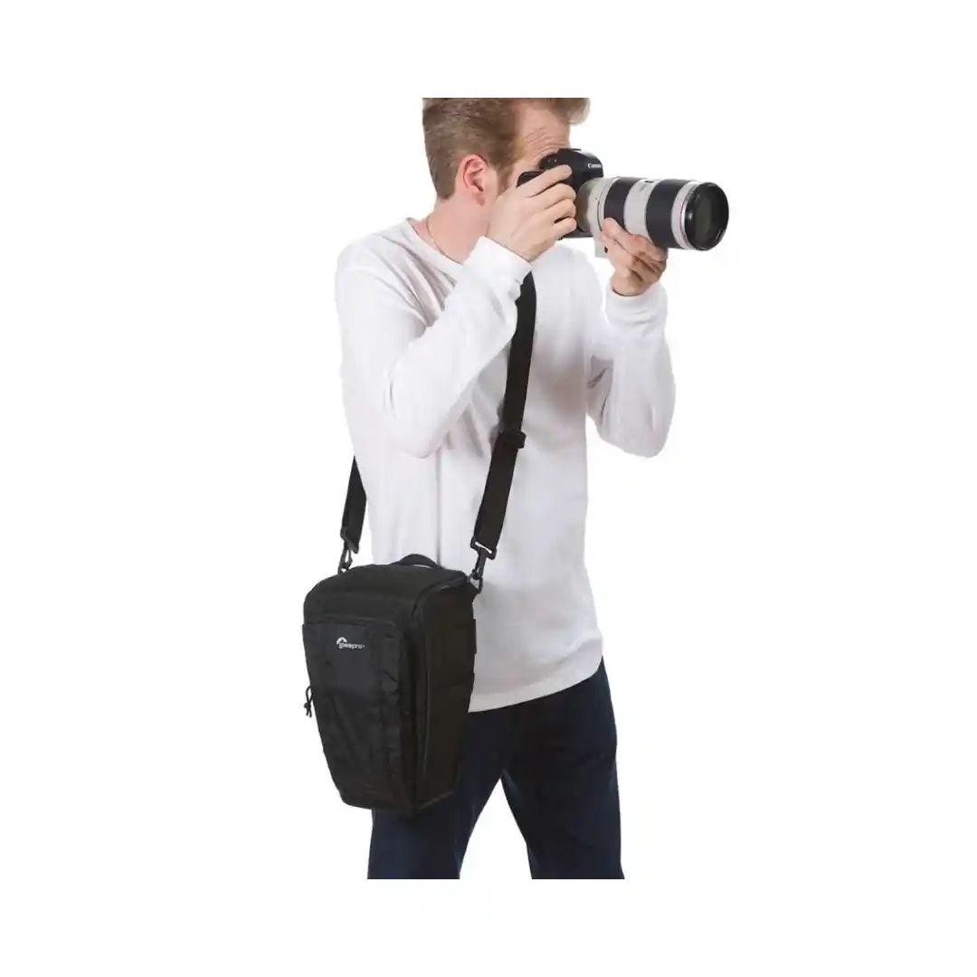 Lowepro Toploader Zoom 55 AW II Black adalah tas kamera yang dirancang untuk memberikan perlindungan maksimal dengan akses cepat dan praktis. Tas ini sangat cocok untuk fotografer yang menggunakan DSLR atau mirrorless dengan lensa terpasang serta membutuhkan mobilitas tinggi.