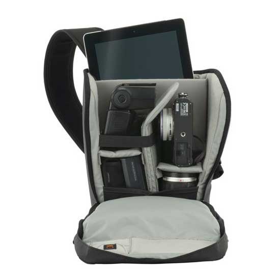 - 2 loading options: top and full panel for maximum organization of camera gear and a tablet