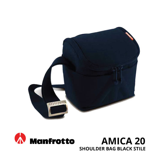 Compact, attractive, minimal, water-resistant, and with all the features required for street or travel photography, the Amica 20 Shoulder Bag from Manfrotto is designed to hold a mirrorless camera with a zoom lens and an extra lens, or a compact DSLR with a lens kit. A versatile bag, it has interior and exterior slip-in pockets for small accessories such as a cell phone, cables, and the like. Double zipper pulls provide for confident and water-repelling closure, while padded, touch-fastening dividers are useful for organizing and protecting gear. Carry your Amica with the padded top handle or wide, adjustable shoulder strap.