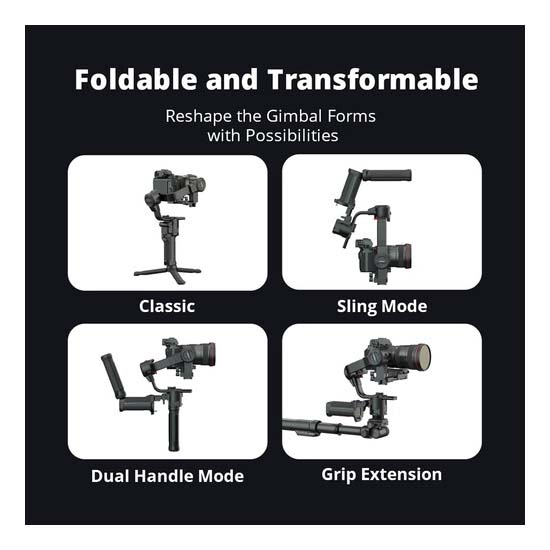 • Empat mode follow termasuk pan follow, pan-tilt follow, FPV, dan Sports Mode 2.0 yang memiliki fitur all-lock follow dengan lima kontrol kecepatan yang dapat disesuaikan