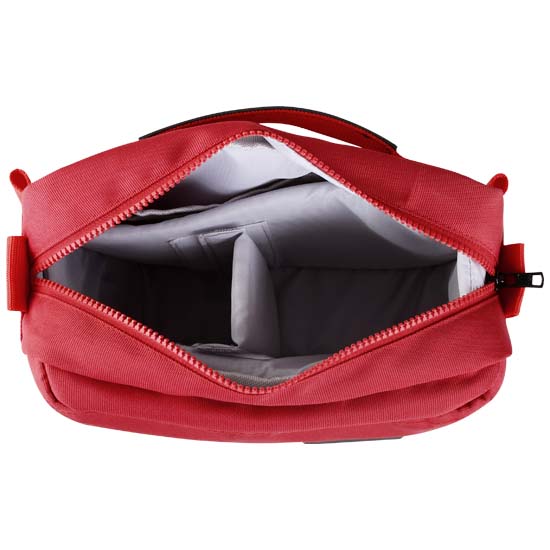 Naica Carmel Sling Bag Red merupakan tas kamera serbaguna yang cocok digunakan untuk kamera Mirroless + 1 Lensa. Selain itu, Tas dilengkapi 1 Inner pocket dengan zipper, 1 Inner pocket dengan 2 divider dan 1 Front pocket dengan zipper cocok untuk membawa charger baterai, memory , kabel, dsb.
