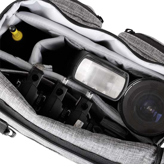 Naica Devon Sling Bag Grey merupakan tas kamera serbaguna yang cocok untuk kamera Mirrorless + 1-2 Lensa. Selain itu, tas juga dilengkapi dengan 2 Front Pocket, 1 Inner Pocket dan 1 Pocket Back yang cocok untuk menyimpan aksesoris dari kamera seperti memory dan lain sebagainya.