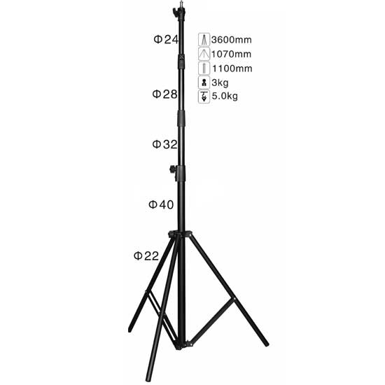 NiceFoto Light Stand Air Cushion LS-360AT sangat ringkas dengan bebannya yang hanya 2.5kg dan kokoh karena terbuat dari bahan alumunium dan sangat cocok untuk advance strobist menggunakan Studio Strobe dan light stand ini juga memiliki diameter yang besar cocok untuk light modifier yang berat seperti: Softbox/Beauty Dish.