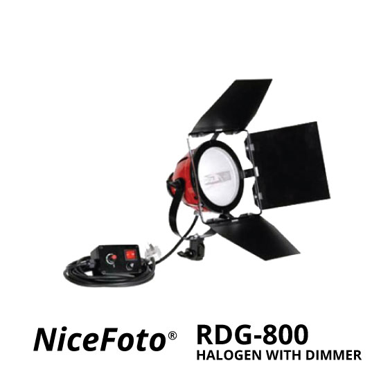 NiceFoto Red Head Halogen With Dimmer RDG-800 ini bisa diatur untuk fokus cahaya-nya (focusable light), selain itu NiceFoto Red Head Halogen With Dimmer RDG-800 sangat cocok untuk videografi maupun fotografi, dilengkapi dimmer (pengaturan power cahaya) dan barndoor sehingga cahaya bisa di-kontrol dengan mudah. Dengan warm light color atau color temperature 3200K (Fluorescent Lamp/ Halogen Lamp).