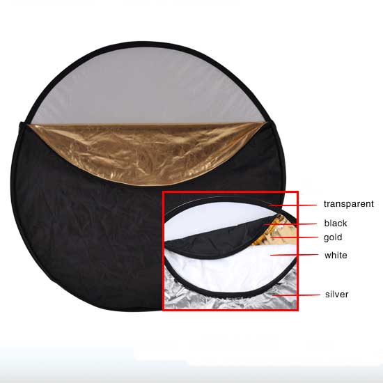 - Reflektor 5in1 yang berisi warna gold, silver, white, black, Translucent (Transparent).