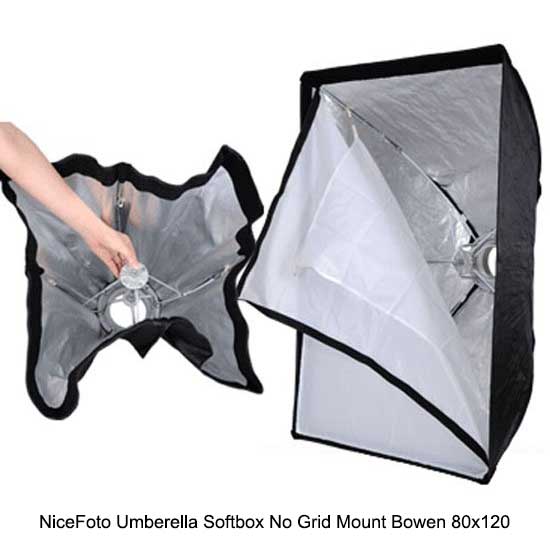 NiceFoto Umberella Softbox No Grid Mount Bowen 80×120