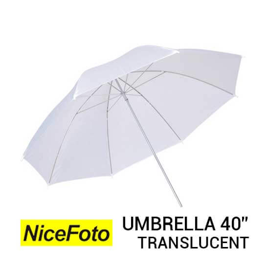 NiceFoto Umbrella Translucent 40 adalah peralatan fotografi berupa payung untuk membantu aktifitas pemotretan. Sering digunakan bersama dengan lamp holder dan lampu. Fungsi utamanya adalah membuat gambar plain lebih penuh, memiliki efek tiga dimensi, mencerminkan tekstur yang baik, cahaya lembut, tidak akan menyebabkan ketajaman cahaya mengisi flash. Berbeda dari softbox, Umbrella Translucent dapat mengecilkan sudut cakupan untuk mendapatkan cahaya lembut yang lebih pekat. Payung ini memiliki ukuran Ø40″ (102cm).
