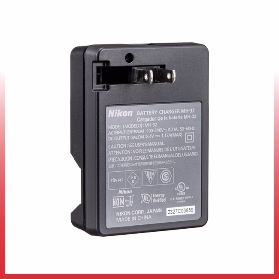 Nikon MH-32 biasanya disertai dengan kabel daya AC atau adaptor dinding tergantung pada paket pembelian dan wilayah penjualan. Anda dapat memilih untuk menggunakan kabel AC jika ingin fleksibilitas dalam posisi charger, atau langsung mencolokkannya ke stopkontak dengan adaptor dinding agar lebih praktis.