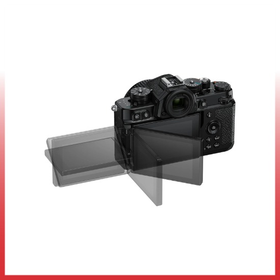 Desain intuitif yang ramah haptic ini tidak hanya berlaku untuk kontrol bergaya retro pada kamera. Electronic viewfinder kamera, yang terletak di housing berbentuk prisma yang nyaman untuk mata, kini dapat dimanipulasi dengan menyentuh layar LCD belakang vari-angle 3.2″, memungkinkan pengguna untuk memindahkan titik fokus, memilih subjek untuk dilacak, dan beralih antara mode tampilan sambil mata tetap menempel pada viewfinder. Layar belakang juga sepenuhnya dapat diputar dan menghadap ke depan, memudahkan navigasi dan operasi pada sudut tinggi dan rendah.