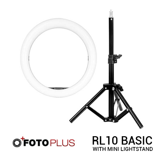 Fotoplus Ring Light RL-10 Basic Kit yang memiliki keunggulan seperti CRI: >90, 10-level brightness, warm light, white light dan warm white light yang sangat meningkatkan kreafitas anda dalam menghasilkan foto yang sempurna. Ring Light RL-10 LED cocok langsung digunakan pada Light Stand yang lebih besar. Selain itu, dilengkapi tombol pengaturan yang memiliki fungsi dimmer untuk mengatur kekuatan cahaya agar Anda bisa mendapatkan cahaya yang sesuai Anda inginkan, kemudian switch mode dan tombol on/off.