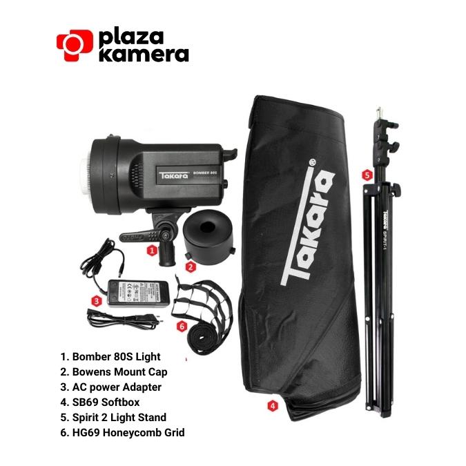 Paket Takara COMBO 2 merupakan paket hemat dengan harga murah yang begitu terjangkau, terdiri dari beberapa perangkat yang  siap untuk mendukung keperluan yang anda miliki. Isi paket antara lain berupa 1 pcs Takara Bomber 80S, 1 pcs Takara SB69 Softbox 60X90 cm, 1 pcs Takara HG69  Honeycomb Grid, dan 1 pcs Takara Spirit 2 Light Stand. Paket Takara COMBO 1 begitu cocok digunakan untuk foto Indoor ataupun Outdoor karena menggunakan lightning yang terang pastinya dengan dukungan softbox.