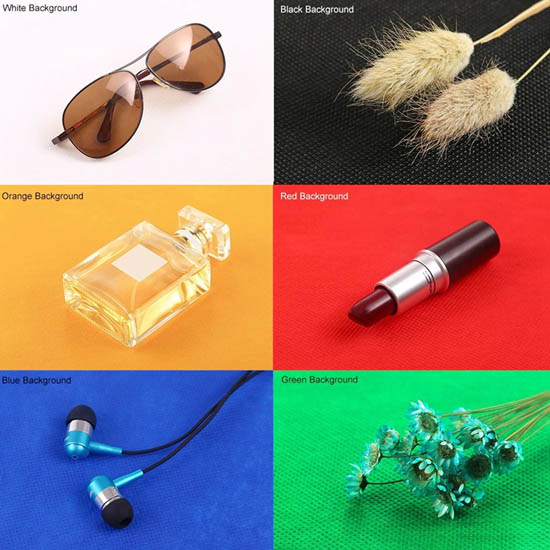 Anda dapat memilih menggunakan 6 background (Hitam, Putih, Oranye, Merah, Hijau, Biru) yang tersedia dalam box.