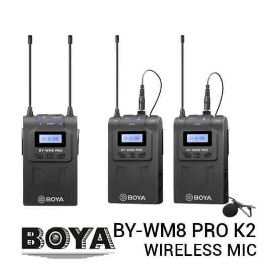 Boya BY-WM8 Pro K2 adalah UHF Dual-Channel Wireless Microphone System yang telah diupgrade untuk menangkap audio dengan subjek ganda, fitur layar LCD yang mudah dibaca, wide switching RF bandwidth, PLL-synthesized tuning dan digital companding circuitry. BY-WM8 Pro K2 ini cocok untuk berbagai aplikasi nirkabel seperti wawancara, pengumpulan berita elektronik (ENG), produksi bidang elektronik (EFP), produksi film, aplikasi bisnis dan pendidikan, dan banyak lagi.