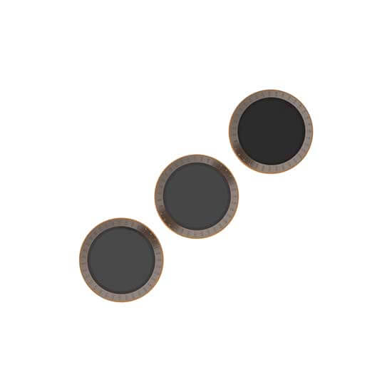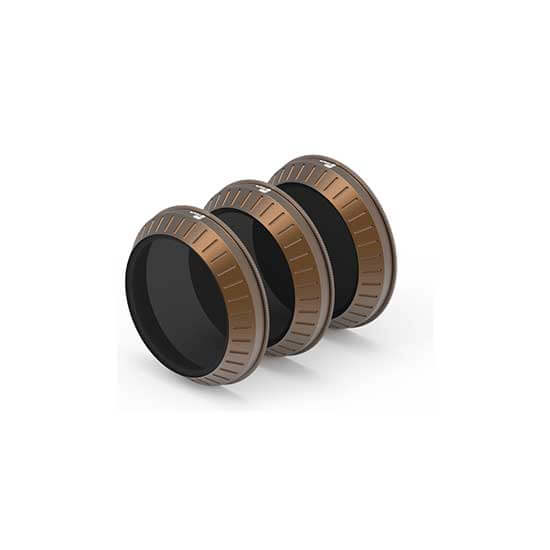 ND4/PL Filter (5.67 g): Filter ini mengurangi shutter speed kamera dengan 2 f-stop dan polarisasi cahaya. Penggunaan filter ini paling sering saat syuting saat senja atau fajar, atau pada hari-hari mendung.