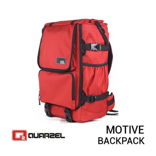 Quarzel Motive Red merupakan Tas Kamera Backpack terbaru dimana termasuk tas ukuran jumbo di antara jajaran tas backpack Quarzel. Ditambah dengan kabin atas yang di design untuk menyimpan beberapa pakaian. Kabin utama dibuka dari depan yang memudahkan untuk mengambil kamera secara cepat. Ritsleting kabin utama dapat dibuka sampai ke bawah untuk memaksimalkan pengguna penyimpanan peralatan. Di bagian dalam terdapat kabin untuk slot laptop maksimal ukuran 14 inch dengan tambahan saku depan yang membuat anda mudah menyimpan dan mengambil peralatan atau aksesori fotografi. Tripod holder terletak di bagian samping tas yang disangga dengan saku agar lebih kuat. Tidak ketinggalan pula terdapat raincover untuk melindungi peralatan kesayangan Anda.