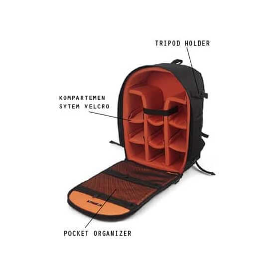 | Capacity | 1 body DSLR, 1 lensa tele, 1-2 zoom/fix, flash, dan aksesoris |