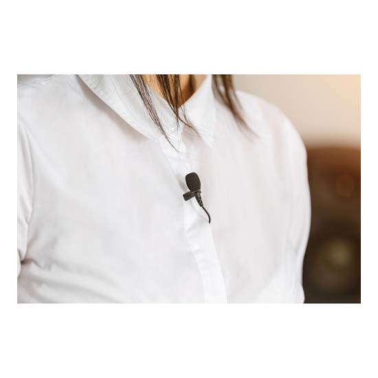 - Mic clip dengan manajemen kabel disertakan untuk mengamankan mikrofon ke pakaian