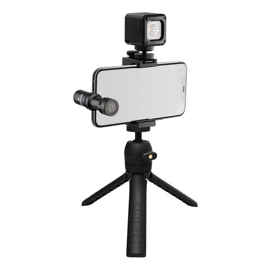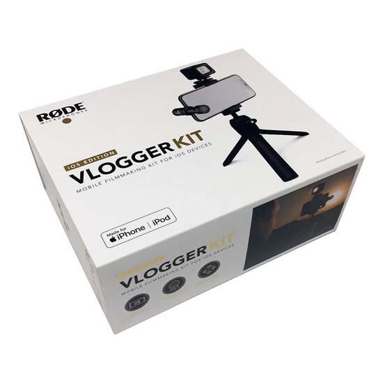Paket ini dilengkapi Rode VideoMic Me-L ultracompact condenser microphone, lampu pada kamera dengan diffuser dan delapan filter berwarna, tripod, phone holder, dan aksesoris yang diperlukan agar semuanya berfungsi. Dilengkapi dengan Vlogger Kit iOS Edition, iPhone atau iPod Anda dapat berubah menjadi sistem produksi portabel dan nyaman yang memberikan kualitas suara dan gambar yang jauh lebih baik.