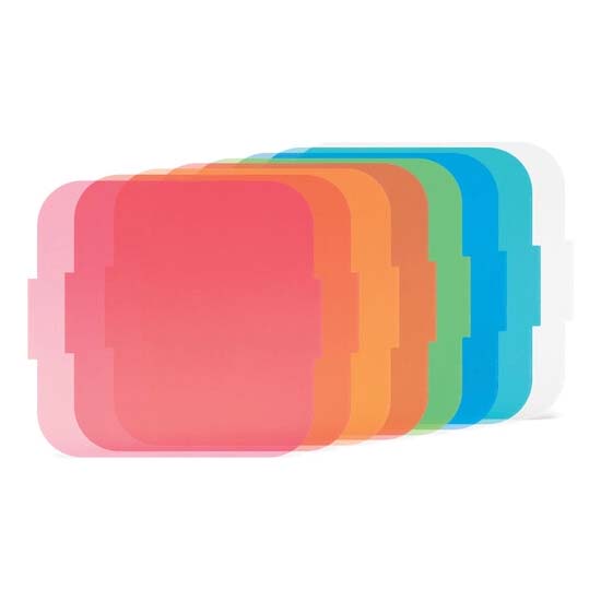 MicroLED memiliki empat pengaturan kecerahan yang dapat disesuaikan, dan diffuser clip-on dengan delapan filter berwarna.