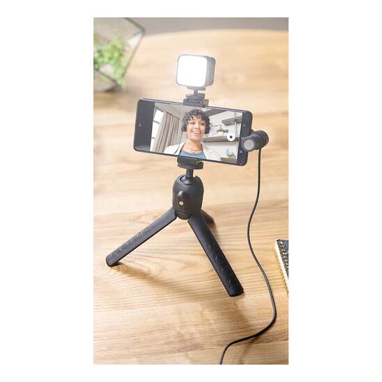 Paket ini dilengkapi Rode VideoMic Me-C ultracompact condenser microphone, lampu pada kamera dengan diffuser dan delapan filter berwarna, tripod, phone holder, dan aksesoris yang diperlukan agar semuanya berfungsi. Dilengkapi dengan Vlogger Kit USB-C Edition, smartphone Anda dapat berubah menjadi sistem produksi portabel dan nyaman yang memberikan kualitas suara dan gambar yang jauh lebih baik.