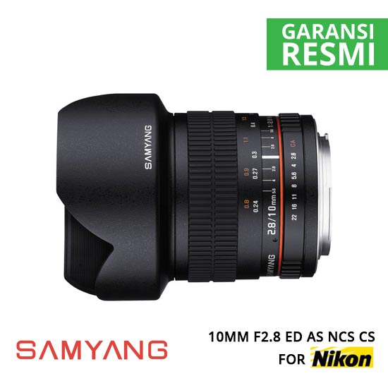 Samyang 10mm F2.8 ED AS NCS CS for Nikon AE adalah lensa prime, manual focus wide-angle lens yang dirancang khusus untuk digunakan dengan sensor gambar berukuran APS-C. Menyediakan focal length 35mm setara 15mm dan sudut pandang 109,5 ° yang luas, lensa ini sangat ideal untuk aplikasi fotografi interior, architectural, dan landscape. Satu elemen dispersi ekstra rendah dan dua elemen aspherical telah digabungkan ke dalam desain optik untuk meminimalkan penyimpangan dan chromatic aberrations untuk menghasilkan gambar yang lebih tajam. Selain itu, nano crystal anti-reflection coating system (NCS) telah diterapkan pada elemen lensa untuk mengurangi refleksi permukaan dan mencegah flare lensa dan ghosting untuk transmisi cahaya yang lebih baik dan citra yang lebih kaya kontras.