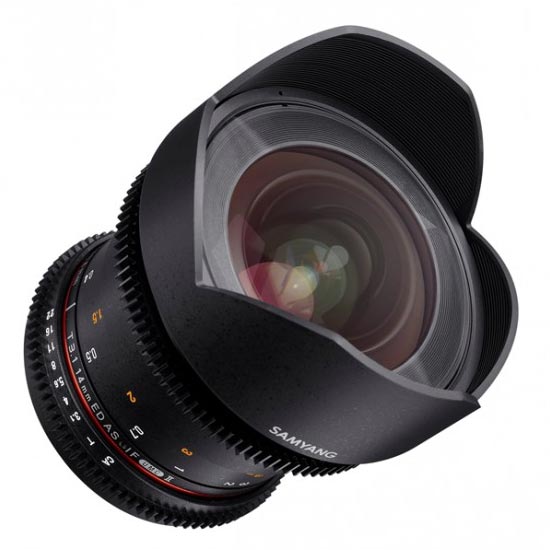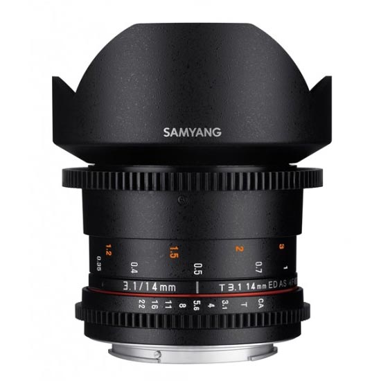 Samyang 14mm T3.1 VDSLR ED AS IF UMC II untuk Nikon F-Mount dioptimalkan untuk aplikasi film dan video. Ring fokus dan iris menampilkan perlengkapan standar industri, yang menyediakan antarmuka untuk digunakan dengan fokus berikut. Untuk membantu penarik fokus, aperture dan skala fokus ditandai di sisi lensa. Lensa 14mm ini menghasilkan sudut pandang lebar 115,7 ° ultra-wide saat digunakan dengan kamera full-frame atau 35mm. Lensa aspherical hibrida membuat gambar yang didefinisikan dengan tajam dengan minimal distorsi dan penyimpangan kromatik, dan jarak fokus minimum adalah 11,02 “dari lensa.